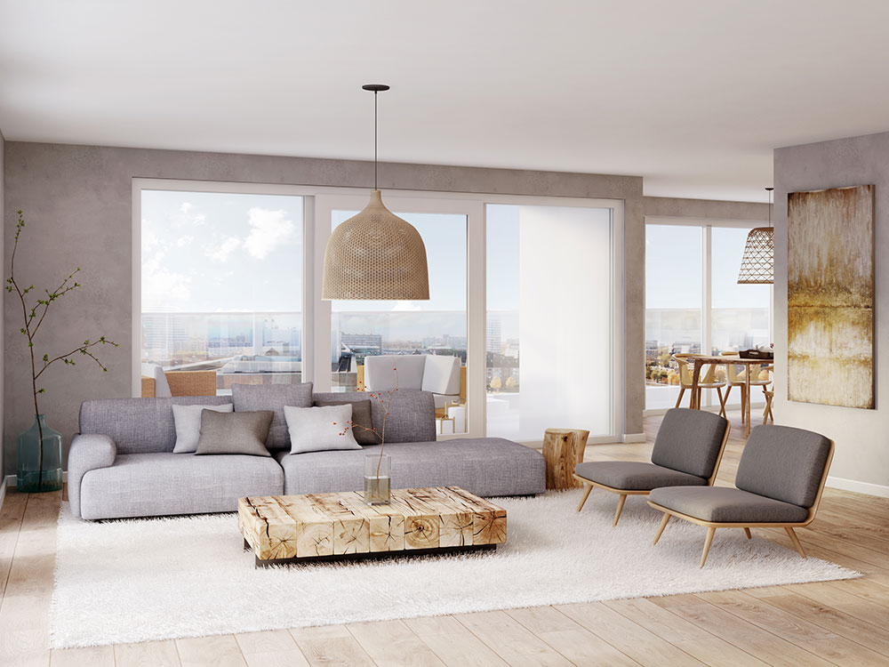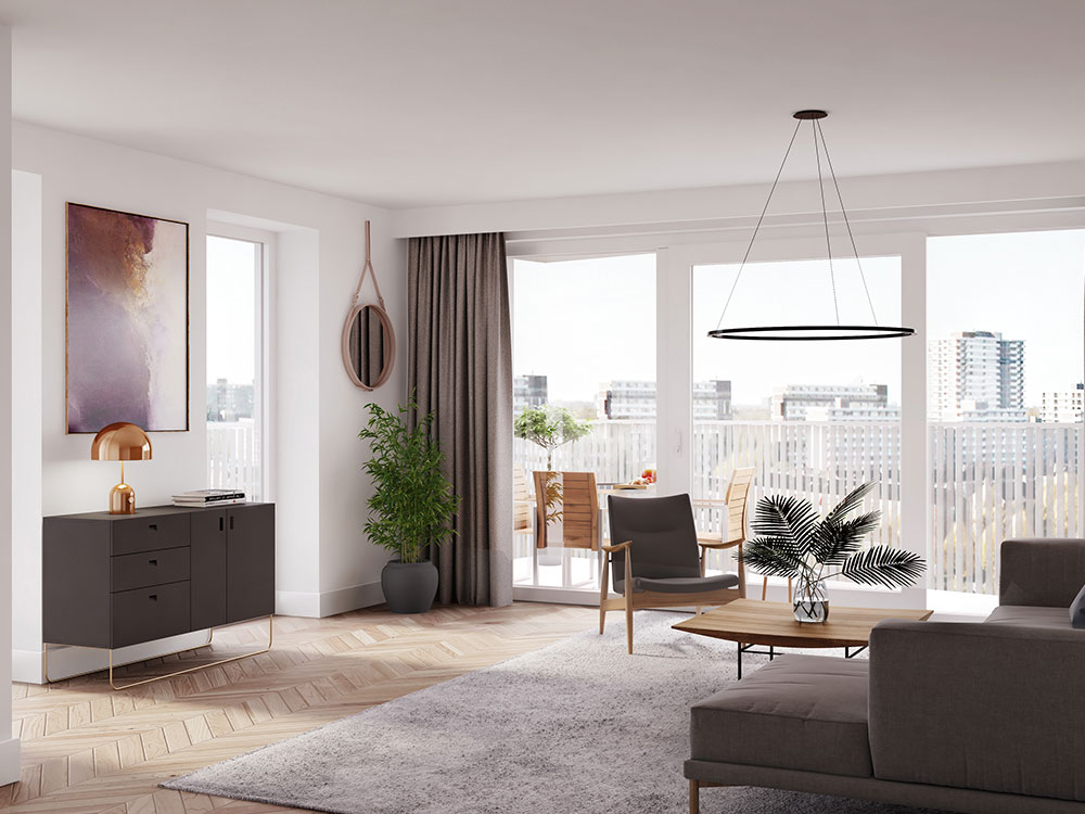 Of u nu kiest voor twee, drie, vier kamers of een penthouse, alle appartementen zijn hoogwaardig afgewerkt. We verdelen de appartementen in drie typen. Compact, Comfort en Luxe. Het verschil zit onder meer in de afwerking van het tegelwerk en het sanitair. In de technische omschrijving wordt per type omschreven wat dat precies inhoudt. Bij ieder appartement kunt u gebruikmaken van de gemeenschappelijke fietsenstalling en hebt u de beschikking over een eigen parkeerplaats en berging op de begane grond.